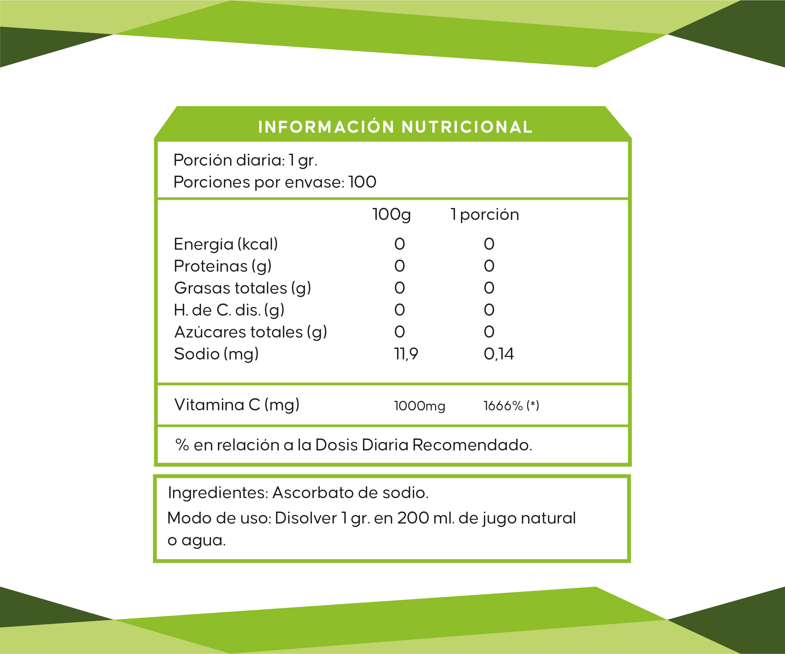 Dosis de ingesta diaria recomendada: 1 gr. (1.000 mg.)